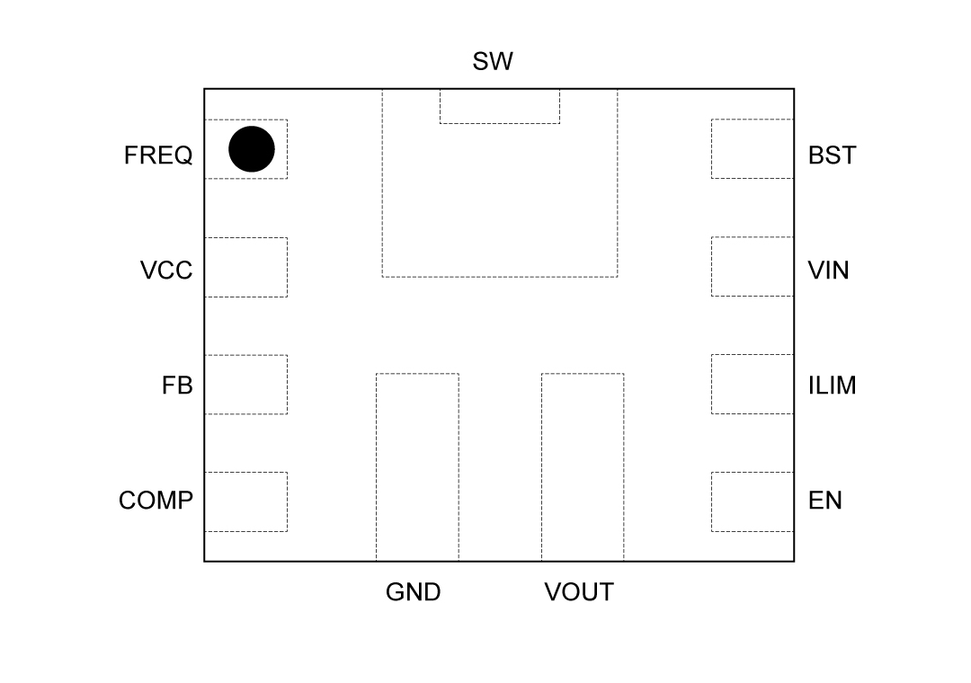 1 | FREQ | 開關頻次設置,在該腳與SW之間毗連電阻設置開關頻次 |