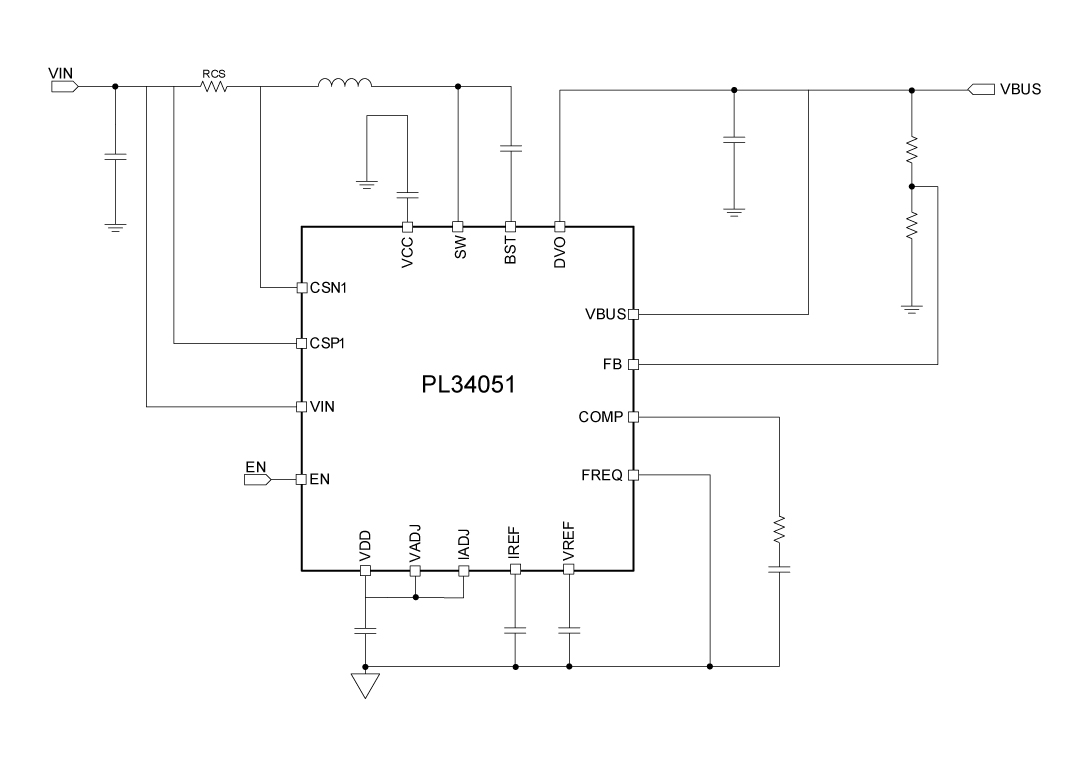 PL34051都是款投入線電壓企業規模2.8V至32V的高效率的微信同步升壓DC-DC轉型器,它使用固定導通當時(COT)合理拓撲關系,可供求關系迅速的瞬態映襯。PL34051集成功了多個低導通熱敏電容的馬力場相互作用硫化鋅管(FET):同有一個導通熱敏電容為13mΩ的開關按鈕FET和同有一個導通熱敏電容為13mΩ的整流FET。單獨,PL34051使用輸入脈沖騰躍組織形式來進步獎輕載或負載的環境下的物上請求權。 控制開關頻率可決定FREQ引腳與一定接地引腳中差別人的功率電阻值設制為150kHz或300kHz。該電子器件還都擁有可和程序編寫軟開機功能主治,VADJ和IADJ引腳在對鍵盤復制粘貼VBUS額定電壓和鍵盤復制粘貼直流電抽選暫停和程序編寫。它都擁有欠壓重設(UVLO)、軟開機(SS)、外穩光電探測器源和斜率化解功能主治,因而最大的質量地嚴控了外部件的數量。 PL34051供應者相電壓放肆環路和恒流環路。掩體好處一般包括應用于負載掩體(OLP)的打嗝行駛、過壓掩體(OVP)。