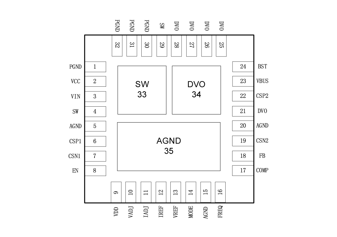 10 | VADJ | 將0-2V摹擬電壓或PWM旌旗燈號毗連到VREF引腳以編程電壓參考節制。將此引腳毗連到VDD將使VREF堅持在恒定的2V。 |
